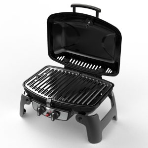 Gas Portable Grill / 5kW / 2-Knob-Control / Black Powder Coating / High-gloss Enamel Cooking Grid