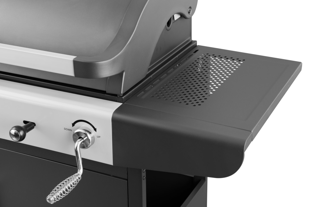 Rotate the front crank handle to raise or lower charcoal pan to control the distance between the charcoal pan and food for fine-tuning temperature.