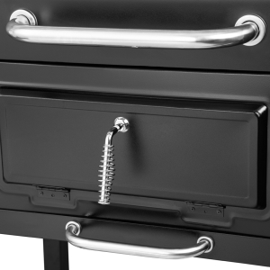 Charcoal access door with the cool-touch spring handle in the front offers great convenience and safeness to tend charcoal or stoke fire in the grilling.