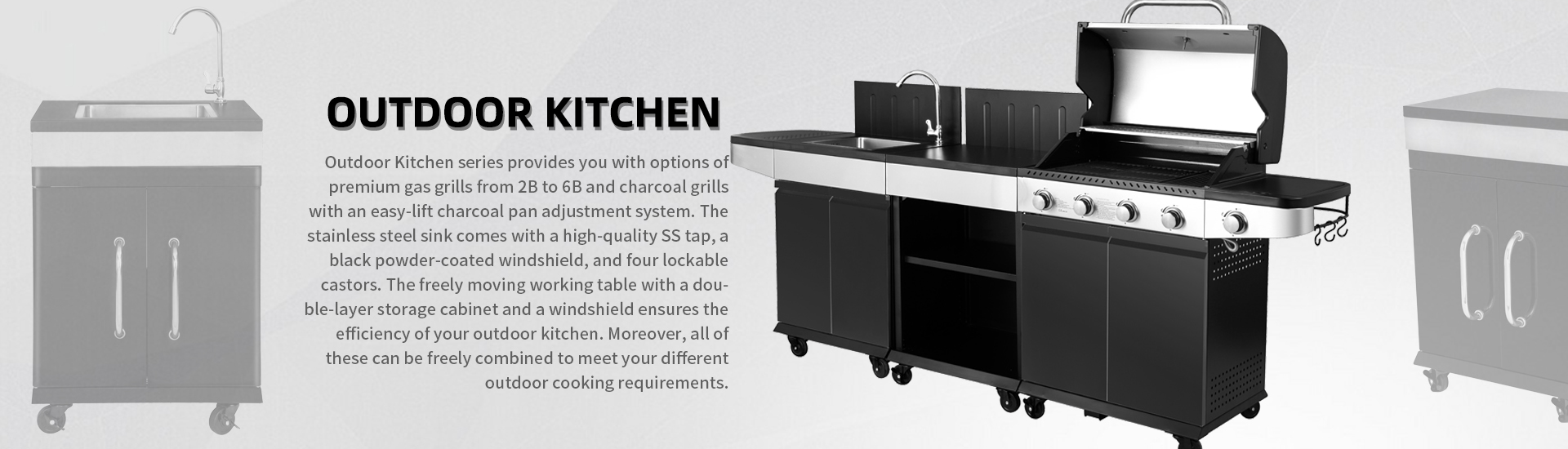 Outdoor Kitchen 3 Burners Gas Grill with Sink and Worktable